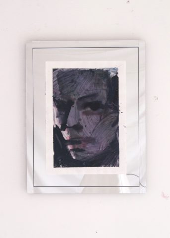 Watercolor and aluminum dust on Oilskin Cotton In Silver Mirror Frame